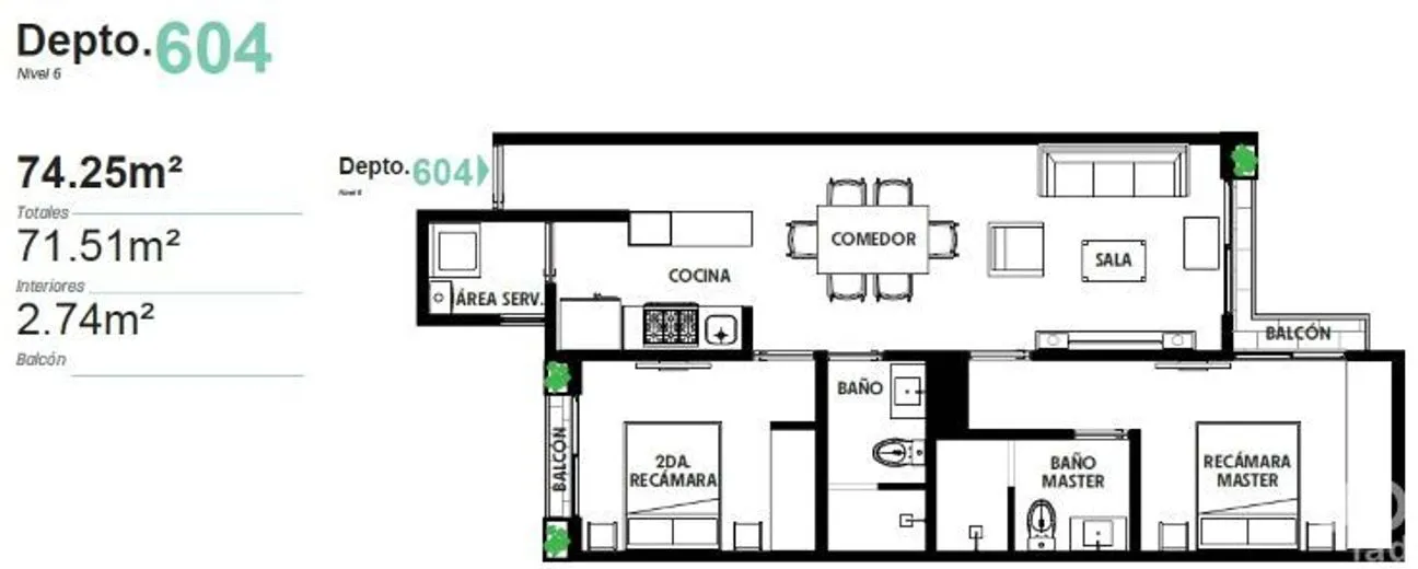 Con una construcción de 74.25 m2, este departamento ofrece un diseño funcional y acogedor. Entre sus amenidades destacan el elevador, balcón, área de servicio, cocina equipada, roof garden común y seguridad privada, lo que brinda tranquilidad y confort a sus residentes. Además, ¡se aceptan mascotas, convirtiéndolo en un hogar perfecto para quienes tienen amigos peludos!